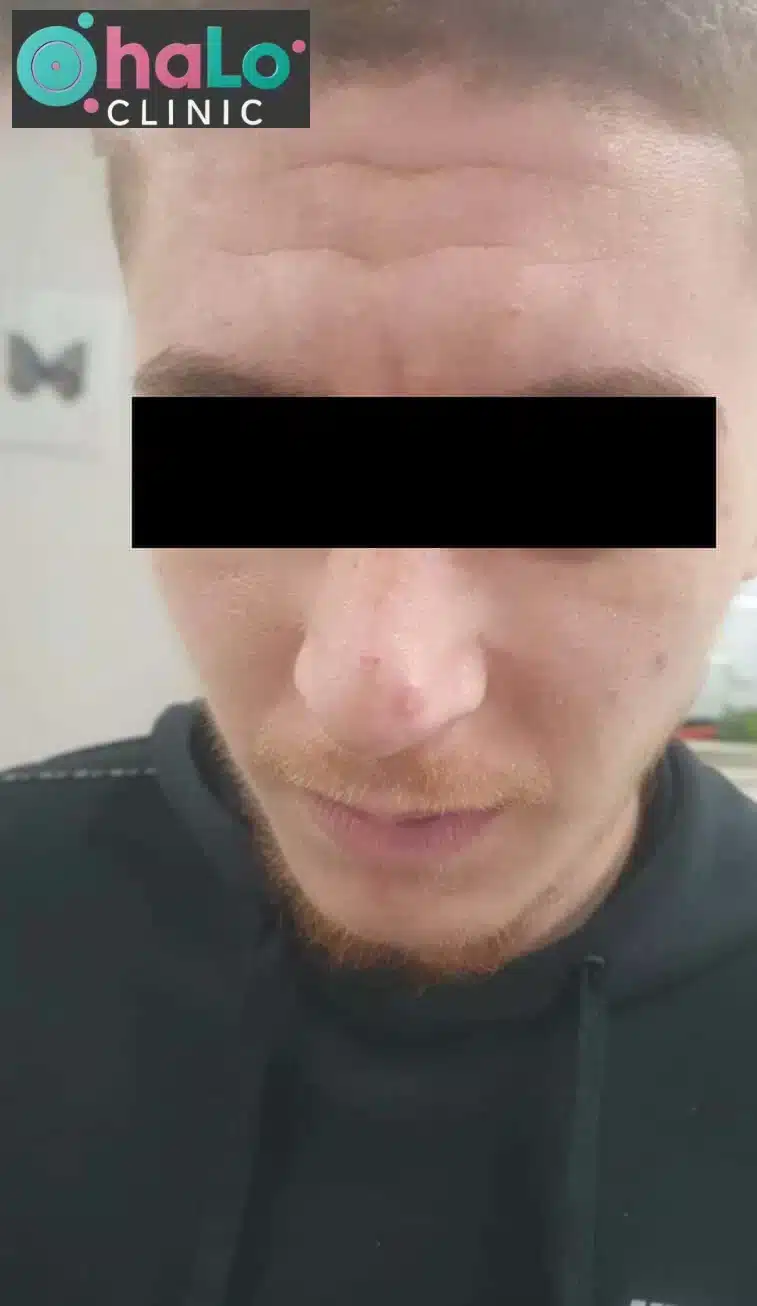 תמונת "לפני" המציגה מטופל עם נקודות חן ונגעי עור בפנים, בטרם טיפול להסרתם בלייזר במרפאת Halo Clinic. הטיפול מיועד להשגת תוצאה אסתטית, בטוחה וללא צלקות.
